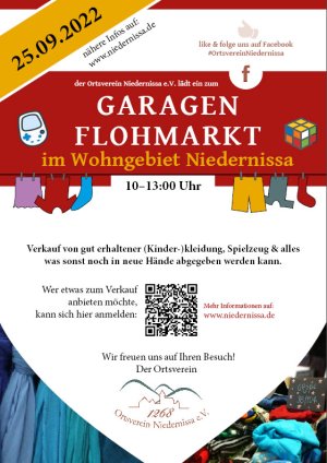 Bereits zum 2. Mal fand unser Niedernissaer Garagenflohmarkt statt, diesmal mit deutlich mehr Zulauf, was die Verkäufer udn auch Käufer freute. Verkauf von gut erhaltener (Kinder-)kleidung, Spielzeug & alles was sonst noch in neue Hände abgegeben werden kann.