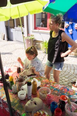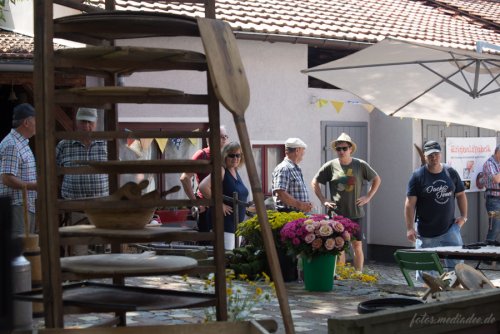 Mit wunderschön ausgestatteten Höfen, wunderbaren Künstlern und zahlreichen kulinarischen und kulturellen Leckerbissen konnten die Besucher der 750-Jahrfeier von Niedernissa diesen Hauptfesttag genießen. Neben traditioneller Handwerkskunst wie dem Maskenmacherhandwerk, dem Bleiverglasen, Töpfern und Blumenbinden, konnten Jung und Alt jede Menge über die Natur lernen, selbst Seifen herstellen, malen, basteln und spielen. Auch unser offizieller und öffentlicher Bocciaplatz wurde gern angenommen. Die Firma Mortag, die ebenfalls Jubiläum feierte, bereicherte unser fest durch Baumaschinen zum Anfassen und Antesten, motorisierte Spielmöglichkeiten für die Kids und ein wunderbares Konzert von VizeUdo. Besonders stolz waren wir auf den Besuch des MdR, welcher live aus Niedernissa einen kleinen Einblick ins Festwochenende gab und seinen Wetterbericht sendete. Die Sonne war das gesamte Wochenende über mit uns ;)