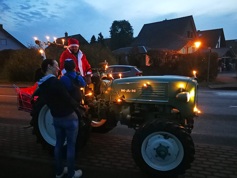 Deshalb waren dieses Jahr am 6.12.2020 ab 16 Uhr die Helfer und Helferinnen des Weihnachtsmanns für Euch im Dorf unterwegs und sammelten Eure Wunschzettel ein. Jedes Kind welches auf das Glöckchen oder unseren Nikolaus-Traktor hörte, konnte die Weihnachtsmanngehilfen besuchen, seinen Wunschzettel abgeben und wurde beschenkt.