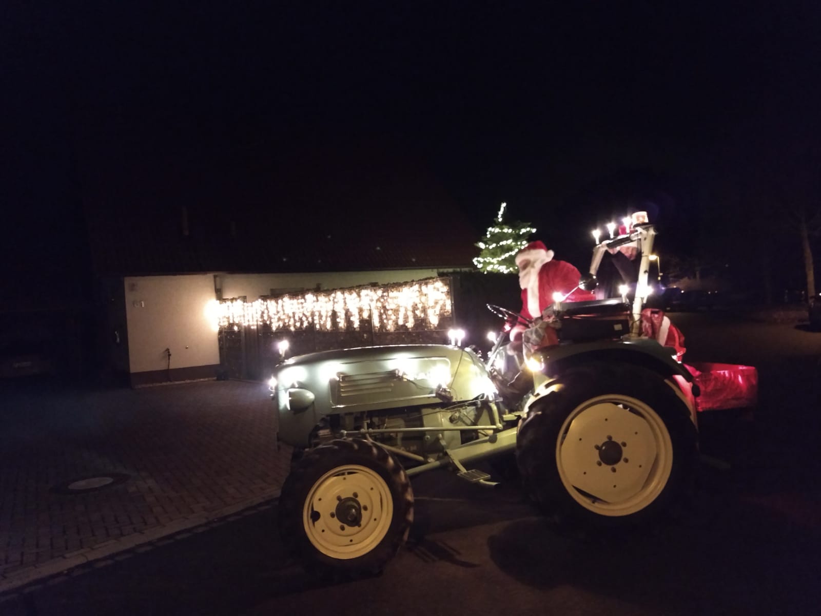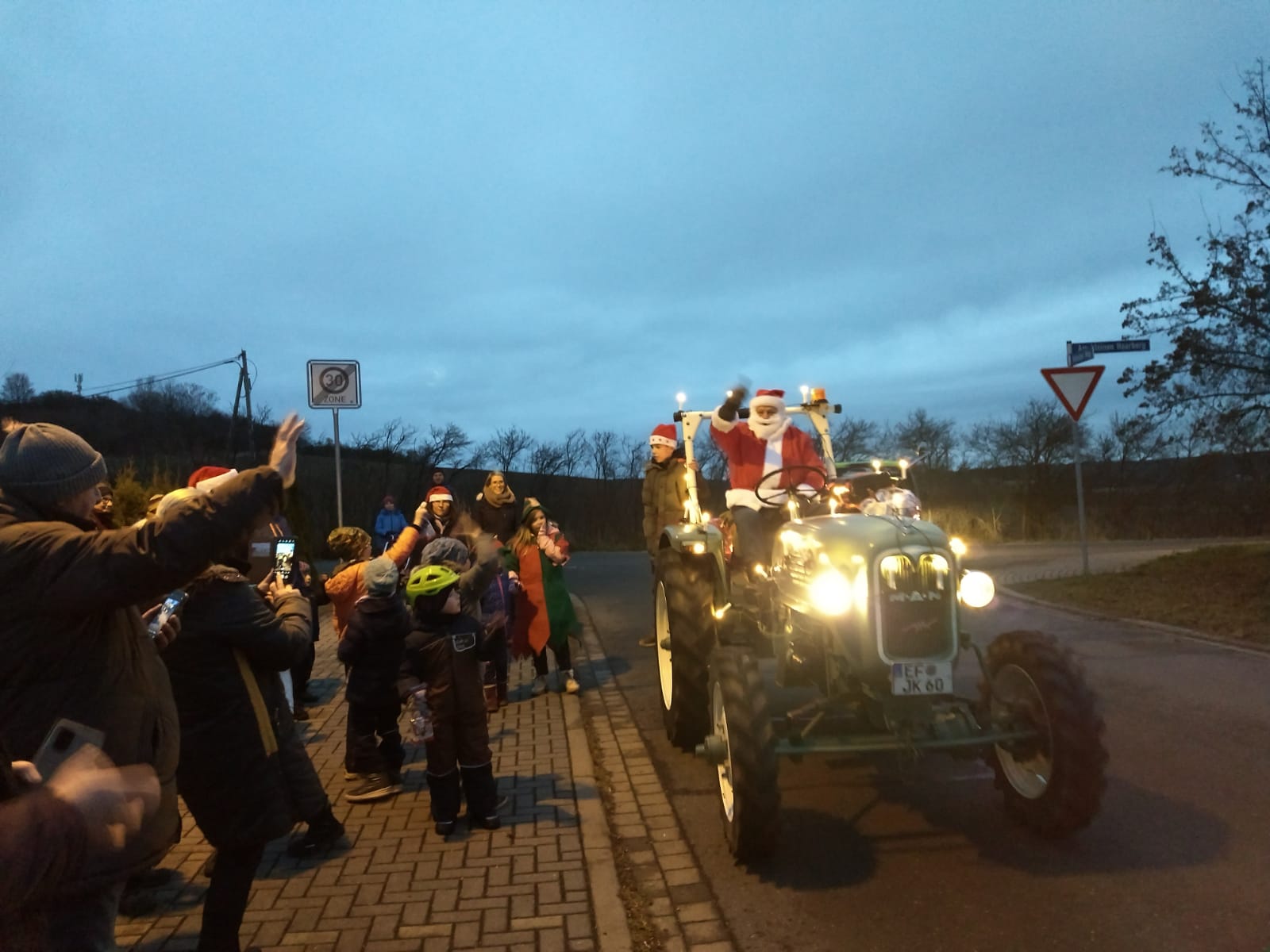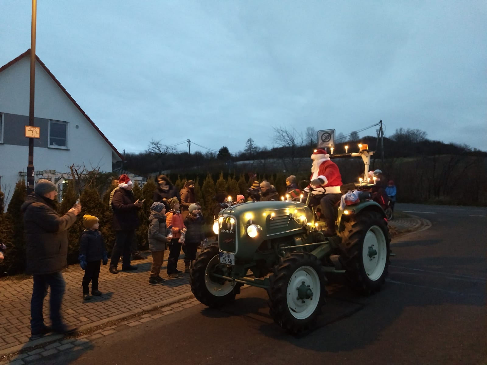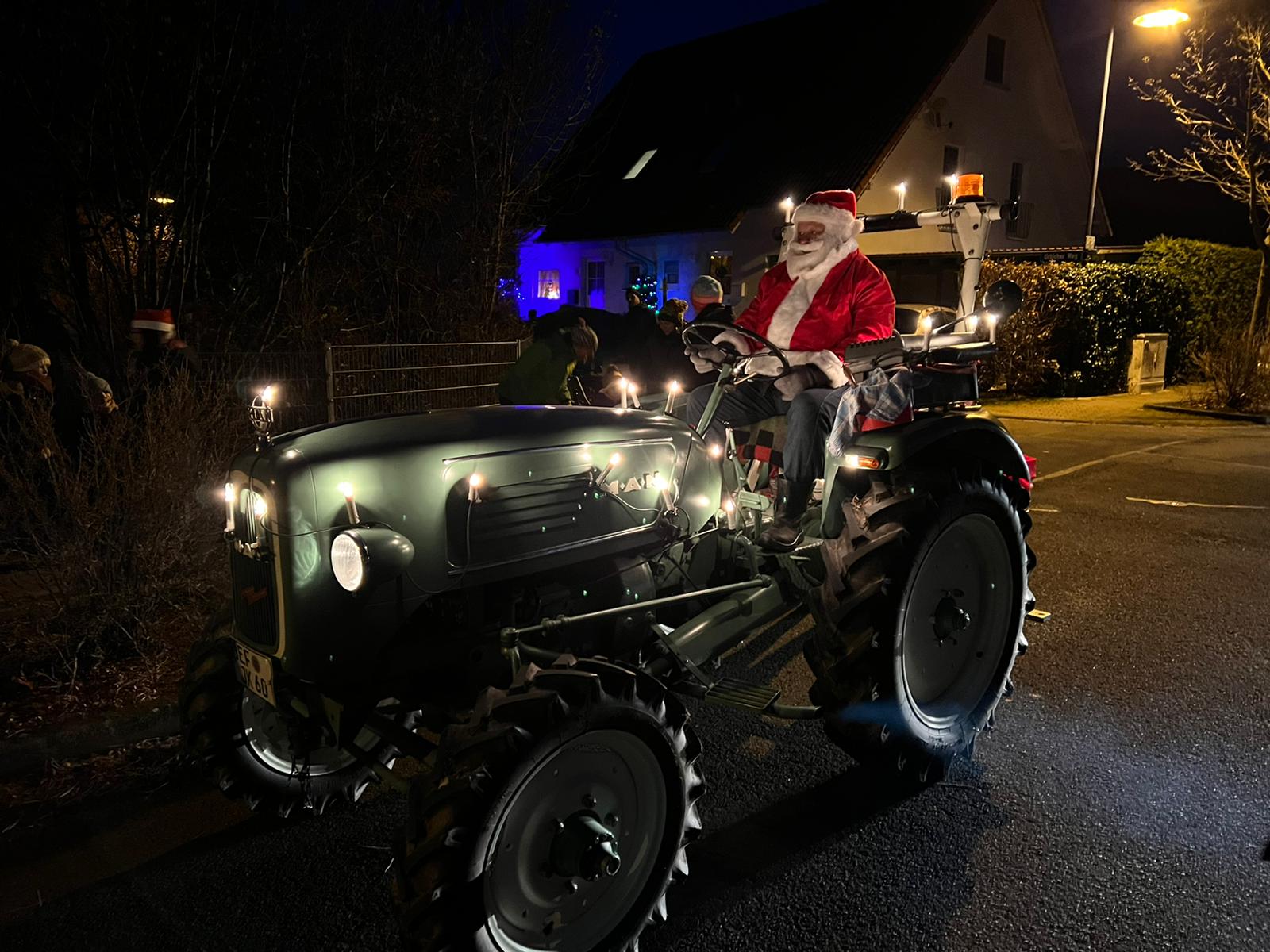 Der Nikolaus war von 16–18 Uhr mit seinem Traktor durch Niedernissa unterwegs